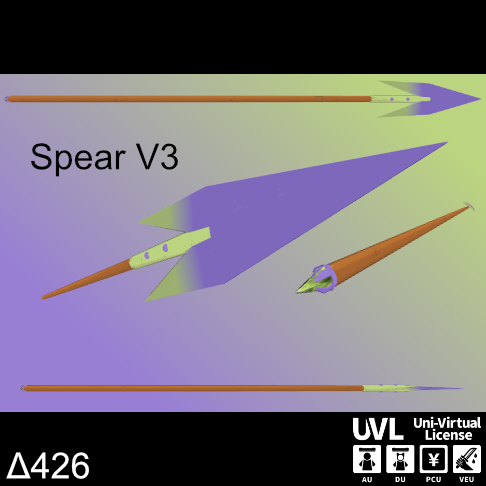 このファイルには、私が作った槍の3番目のバージョンが含まれています。これは水晶スタイルの頭部を捨てて、単一の素材に減らし、v2で使ったポリの量をほぼ半分にした!